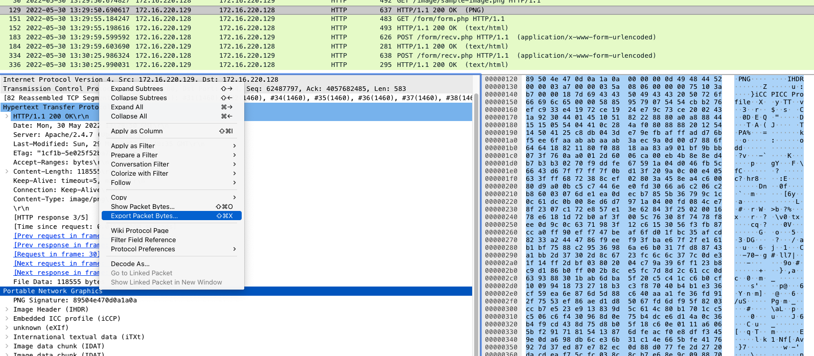 以下はWebサーバーから応答されたPNGファイルを抽出する。