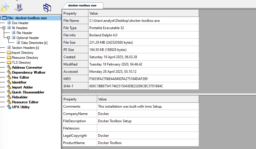 docker-toolbox.exeというファイルを発見したので、getコマンドでダウンロード。どうやらDocker Toolboxのインストーラーらしい。