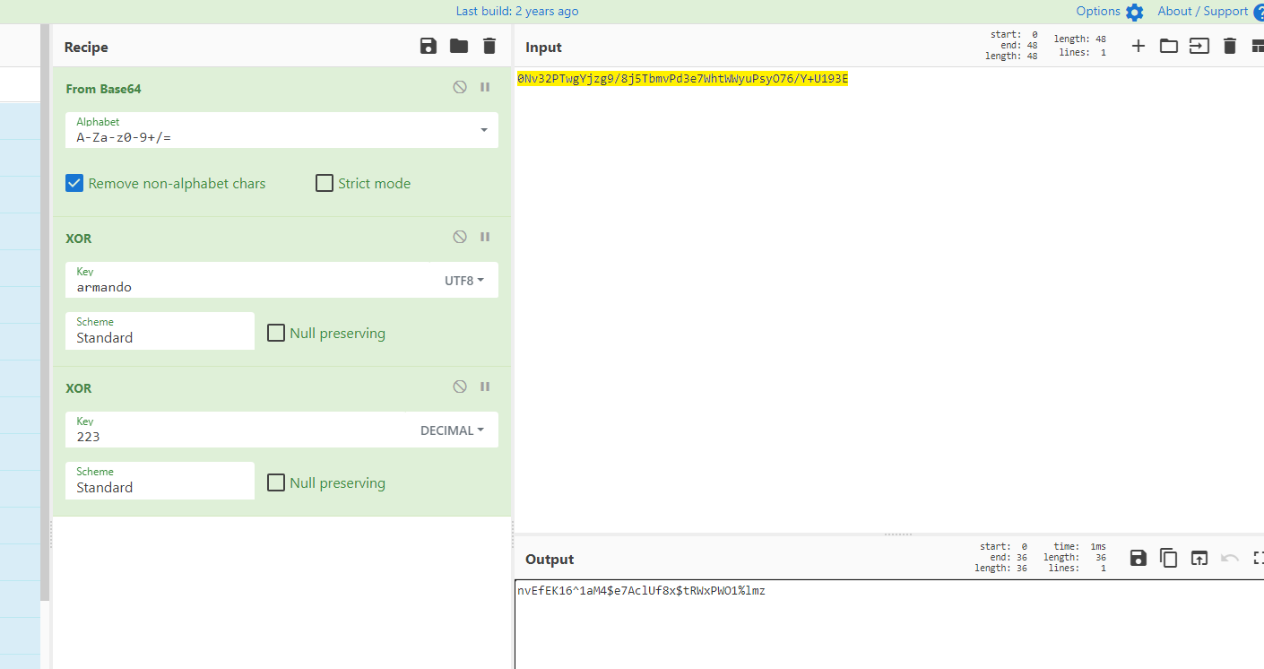 base64decode(0Nv32PTwgYjzg9/8j5TbmvPd3e7WhtWWyuPsyO76/Y+U193E) ^ armando ^ 223