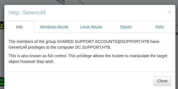 Server: cifs/dc.support.htb @ SUPPORT.HTB