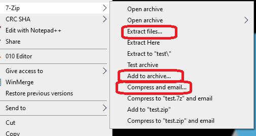 Compress and email(圧縮してメール) を選択した場合Compress to "filename.7z" and emailやCompress to "filename.zip" and emailでは更新されず
