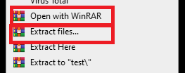 Open with WinRAR(解凍) を選択した場合 - ファイルを右クリックして